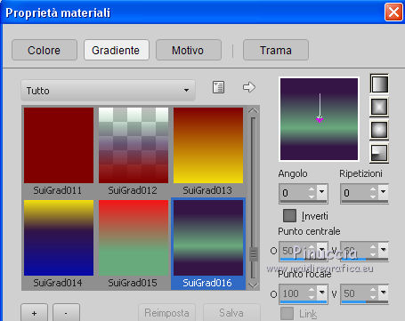 2. Passa il colore di primo piano a Gradiente, e seleziona il gradiente SuiGrad016, stile Lineare