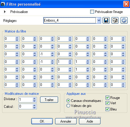 18. Effets>Filtre personnalisé - sélectionner le preset Emboss 4 et ok.
