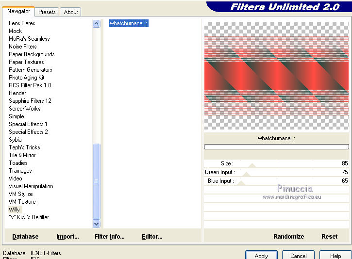 6. Effects>Plugins>Filters Unlimited 2.0 - Willy - whatchumacallit, default settings.