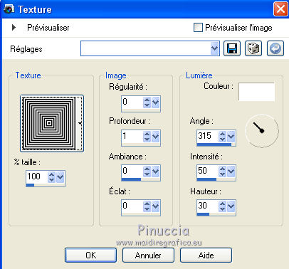 La texture Vierkanten est standard dans PSP et corresponds à la texture Carrés ou, dans les plus récentes versions, Corel_15_012.