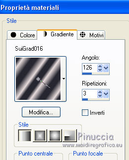 Passa il colore di primo piano a Gradiente e seleziona il gradiente SuiGrad016, stile Lineare.