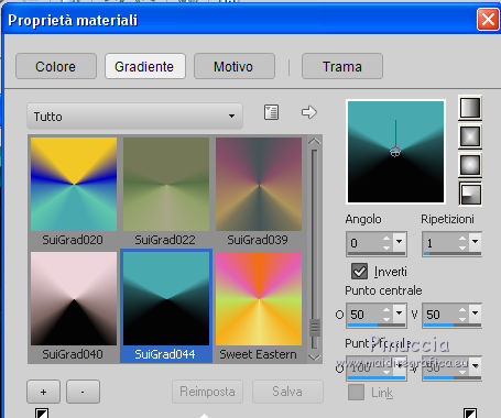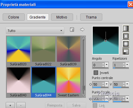 Passa il colore di primo piano piano a Gradiente e seleziona il gradiente SuiGrad44, stile Radiale.