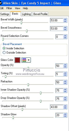 Effetti>Plugins>Alien Skin Eye Candy 5 Impact - Glass, con i settaggi precedenti.