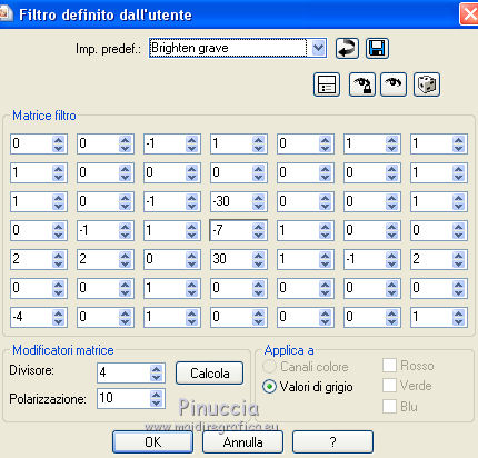 5. Effetti>Filtro definito dall'utente - seleziona il preset Brighten grave e ok.