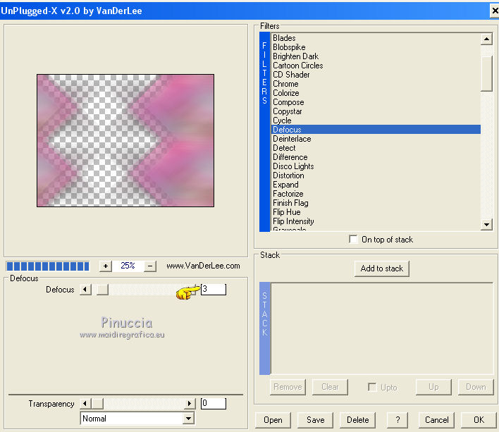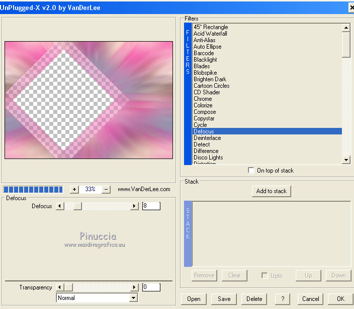 13. Effetti>Plugins>VanDerLee - Unplugged-X - Defocus.