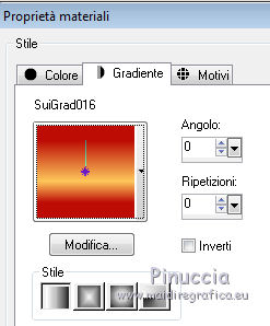 Passa il colore di primo piano a Gradiente, e seleziona il gradiente SuiGrad016, stile Lineare.