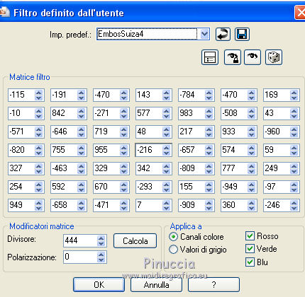 11. Effetti>Filtro definito dall'utente, seleziona il preset EmbosSuiza4 e ok.
