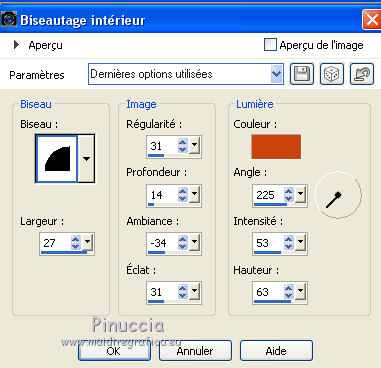 23. Effets>Effets 3D>Biseautage intérieur, couleur d'avant plan #cd430f.