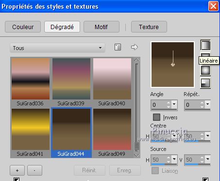 2. Placer en avant plan le dégradé et sélectionner le dégradé SuiGrad044, style Linéaire.