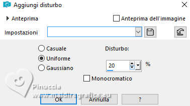 5. Regola>Aggiungi/Rimuovi disturbo>Aggiungi disturbo, con i settaggi precedenti
