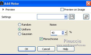 5. Regola>Aggiungi/Rimuovi disturbo>Aggiungi disturbo, con i settaggi precedenti.