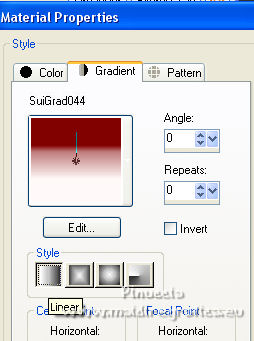 For this tutorial, you will need: Material here Suizabella_Ref_AG-001565.pspimage Suizabella_Ref_AG-002884.pspimage MASKSUIZA-0065.jpg (The links of the tubemakers sites here). Plugins consult, if necessary, my filter section here Filters Unlimited 2.0 here &<Bkg Kaleidoscope> - Kaleidoscope 5 (da importare in Unlimited) here Mehdi - Sorting Tiles here UnPlugged Effects - Tangent Deform here Alien Skin Eye Candy 5 Impact - Perspective Shadow, Glass here Mura's Meister - Pole Transform here Mura's Meister - Copies here Alien Skin Xenofex 2 - Constellation here Filters Unplugged Effects can be used alone or imported into Filters Unlimited. (How do, you see here) If a plugin supplied appears with this icon ![]() ![]() You can change Blend Modes and opacity of the layer, according to your colors. Copy the Gradient in the Gradients Folder. Copy the Mask in the Masks Folder. 1. Set your foreground color to #810100, and your background color to #fff8f8. ![]() 2. Set your foreground color to Gradient and select the gradient SuiGra044, style Linear. ![]() if you use other colors, also the gradient will change color 3. Open a new transparent image 1000 x 800 pixels, Flood Fill the transparent image with your Gradient.4. Adjust>Add/Remove Noise>Add Noise. ![]() 5. Effects>Plugins>Filters Unlimited 2.0 - &<Bkg Kaleidoscope> - Kaleidoscope 5. ![]() 6. Effects>Plugins>Mehdi - Sorting Tiles. ![]() 7. Effects>Plugins>Filters Unlimited 2.0 - Unplugged Effects - Tangent Deform... ![]() 8. Layers>New Raster Layer. Flood Fill the layer with your background color #fff8f8.9. Adjust>Add/Remove Noise>Add Noise, same settings. ![]() 10. Effects>Plugins>Mura's Meister - Pole Transform. ![]() 11. Activate your Magic Wand Tool ![]() and click in the circle to select it. ![]() 12. Open the misted Suizabella_Ref_AG-001565.pspimage and go to Edit>Copy. Go back to your work and go to Edit>Paste into Selection. 13. Effects>Plugins>Alien Skin Eye Candy 5 Impact - Glass. ![]() 14. Selections>Modify>Select Selection Borders. ![]() 15. Flood Fill the selection with your background color #fff8f8.Selections>Select None. 16. Image>Resize, to 75%, resize all layers not checked. 17. Effects>Geometric Effects>Circle. ![]() 18. Layers>Duplicate. Effects>Geometric Effects>Circle, same settings. 19. Again Layers>Duplicate. Effects>Geometric Effects>Circle, same settings. Layers>Merge>Merge Down. Repeat Layers>Merge>Merge Down. 20. Open the tube Gancho and go to Edit>Copy. Go back to your work and go to Edit>Paste as new layer. Place corretly the tube on the figure.![]() Layers>Merge>Merge Down. 21. Effects>Plugins>Mura's Meister - Copies. ![]() 22. Effects>Image Effects>Offset. ![]() 23. Effects>Plugins>Alien Skin Eye Candy 5 Impact - Perspective Shadow Shadow color #000000. ![]() 24. Activate the layer Raster 1. Layers>New Raster Layer. Reduce the opacity of your Flood Fill Tool to 40 ![]() Flood Fill the layer with your background color #fff8f8.25. Adjust>Add/Remove Noise>Add Noise, same settings. ![]() 26. Layers>Load/Save Mask>Load Mask from Disk. Look for and load the mask MASKSUIZA-0065.jpg ![]() Layers>Merge>Merge Group. 27. Activate again the misted SuizaBella_Ref_AG-001565.pspimage and go to Edit>Copy. Go back to your work and go to Edit>Paste as new layer. Objects>Align>Left. Or use your Move Tool ![]() to move the tube to the left side. ![]() 28. Layers>Merge>Merge visible. 29. Open the tube Suizabella_Ref_AG-002884.pspimage and go to Edit>Copy. Go back to your work and go to Edit>Paste as new layer. Image>Resize, to 75%, resize all layers not checked. 30. Effects>Image Effects>Offset. ![]() 31. Adjust>Brightness and Contrast>Brightness and Contrast. ![]() if you are working with a previous version ![]() 32. Effects>Plugins>Alien Skin Eye Candy 5 Impact - Perspective Shadow. Shadow Color #000000. ![]() Sign your work on a new layer. Add, if you want, the author's and translator's watermarks. Layers>Merge>Merge visible. 33. Activate your Freehand Selection Tool ![]() and draw a selection around the tube. ![]() Selections>Invert. 34. Layers>Duplicate - 2 times to get 3 layers. ![]() 35. Stay on the top layer of the second copy. Effects>Plugins>Alien Skin Xenofex 2 - Constellation ![]() 36. Activate the layer below of the first copy. Effects>Plugins>Alien Skin Xenofex 2 - Constellation, click on Random Seed and ok ![]() 37. Activate the bottom layer, Merged. Effects>Plugins>Alien Skin Xenofex 2 - Constellation, click on Random Seed and ok. ![]() Selections>Select None. 38. Save your work en PSP Animation Shop (psp) ![]() 39. Open Animation Shop and the work that you have saved. Edit>Select All. Animation>Animation Proprierties and set Display time to 15. ![]() Check the result clicking on View Animation ![]() and save as gif. Version with tube by Suizabella ![]() ![]() If you have problems or doubt, or you find a not worked link, or only for tell me that you enjoyed this tutorial, write to me. |