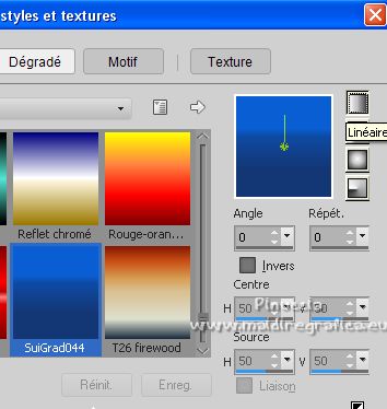 Placer en avant plan le dégradé et sélectionner le dégradé SuiGrad044, style Linéaire.