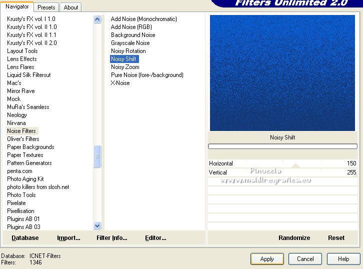 3. Effets>Modules Externes>Filters unlimited 2.0 - Noise Filters - Noisy Shift.