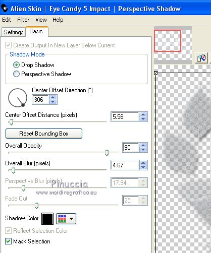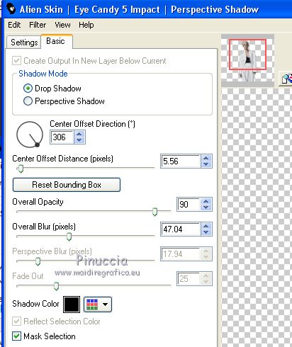 16. Effetti>Plugins>Alien Skin Eye Candy 5 Impact - Perspective Shadow, con i settaggi precedenti.