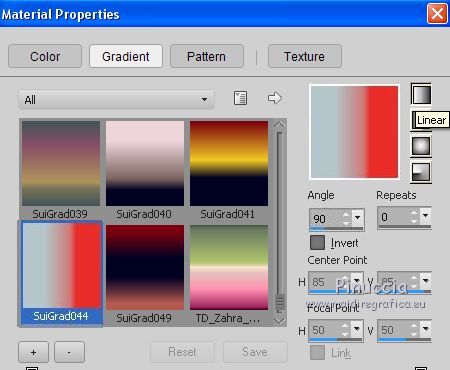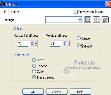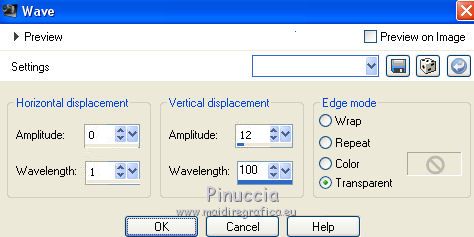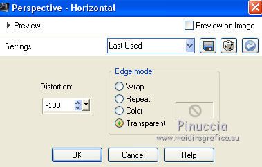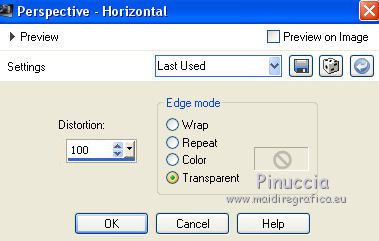For this tutorial, you will need: ![]() (The links of the tubemakers sites here). ![]() consult, if necessary, my filter section here Filters Unlimited 2.0 here VM Distortion - Flipper here Alien Skin Eye Candy 5 Impact - Perspective Shadow, Glass here Mura's Meister - Copies here Flaming Pear - Flexify 2 here Filters VM Distortion can be used alone or imported into Filters Unlimited. (How do, you see here) If a plugin supplied appears with this icon ![]() You can change Blend Modes and opacity of the layer, according to your colors. Copy the Gradient in the Gradients Folder. Copy the preset in the Presets Folder. Copy the Mask in the Masks Folder. 1. Set your foreground color to #e92e2a, and your background color to #b4c6c9. ![]() Set your foreground color to Gradient and select the Gradient SuiGrad044, style Linear. ![]() if you use other colors, also the gradient will change color ![]() 2. Open a new transparent image 1000 x 800 pixels, Flood Fill the transparent image with your Gradient.3. Layers>Duplicate. Image>Miroir. after comparing the result with that of the original tutorial, I did the translation again without doing Image>Miroir. See at the end of the tutorial, the result with this command 4. Effects>Plugins>Filters Unlimited 2.0 - VM Distortion - Flipper. ![]() 5. Adjust>Add/Remove Noise>Add Noise. ![]() 6. Effects>User Defined Filter - select the preset Edge_Enhance_Horizontal and ok. ![]() 7. Effects>Image Effects>Seamless Tiling, default settings. ![]() 8. Open th tube SuizaBella_Ref_AG-001391.pspimage ![]() Edit>Copy. Go back to your work and go to Edit>Paste as new layer. Effects>User Defined Filter - select the preset Edge_Enhance_Horizontal and ok. ![]() 9. Layers>New Raster Layer. Flood Fill the layer with your Gradient.10. Layers>New Mask layer>From image Open the menu under the source window and you'll see all the files open. Select the mask MASKSUIZA-0466A ![]() Layers>Merge>Merge Group. 10. Effects>Plugins>Alien Skin Eye Candy 5 Impact - Perspective Shadow Shadow Color: #000000 ![]() Adjust>One Step Photo Fix. 11. Layers>New Raster Layer. Flood Fill the layer with your Gradient.12. Effects>Geometric Effects>Perspective horizontal. ![]() Repeat Perspective horizontal -100. ![]() 13. Effects>Distortion Effects>Wave. ![]() 14. Effects>Plugins>Mura's Meister - Copies. In this case it is not necessary to change the BG color (in memory from previous settings); the result cannot change ![]() 15. Effects>Plugins>Flaming Pear - Flexify 2. ![]() 16. Effects>Image Effects>Offset. ![]() 17. Layers>Duplicate. Image>Flip. Image>Mirror. Layers>MergeMerge Down. 18. Effects>Plugins>Alien Skin Eye Candy 5 Impact - Glass Glass color: #ffffff ![]() 19. Effects>Plugins>Alien Skin Eye Candy 5 Impact - Perspective Shadow Shadow Color #000000 ![]() 20. Open the tube SuizaBella_Ref_AG-000947.pspimage ![]() Edit>Copy. Go back to your work and go to Edit>Paste as new layer. Image>Resize, to 80%, resize all layers not checked. Place the tube as in my example.21. Effects>Plugins>Alien Skin Eye Candy 5 Impact - Perspective Shadow, same settings Shadow color #000000 ![]() 22. Sign your work on a new layer Add, if you want, the author and translator watermarks. 23. Layers>Merge>Merge All and save as jpg. Resul with Image>Mirror of step 2. ![]() For the tubes of this version thanks AnaRidzi and Cal ![]() ![]() If you have problems or doubt, or you find a not worked link, or only for tell me that you enjoyed this tutorial, write to me. |