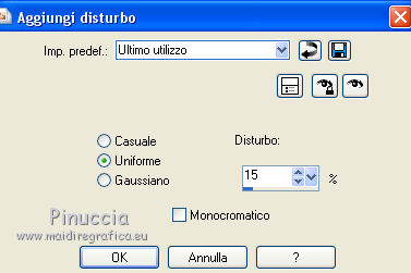 5. Regola>Aggiungi/Rimuovi disturbo>Aggiungi disturbo, con i settaggi precedenti.