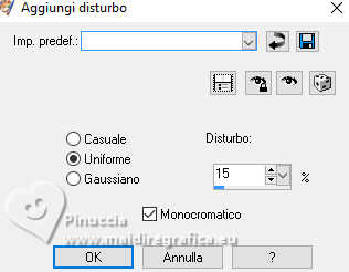 15. Regola>Aggiungi/Rimuovi disturbo>Aggiungi disturbo, con i settaggi precedenti.