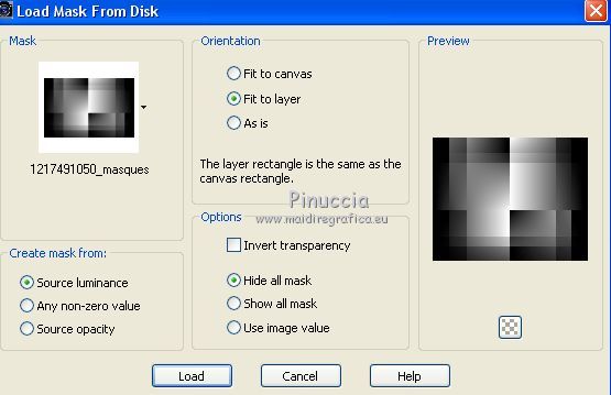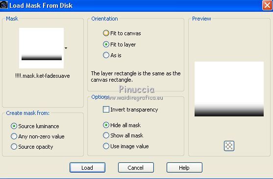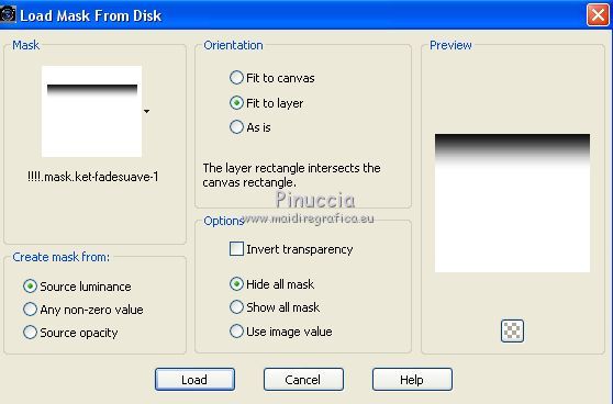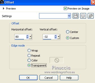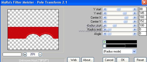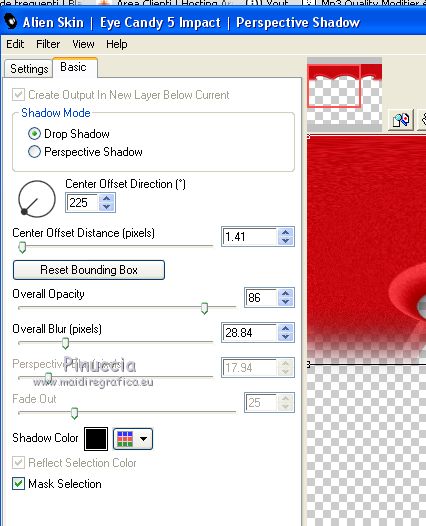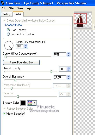 For this tutorial, you will need: Material here SuizaBella_Ref_AG-001710.pspimage 1217491050_masques.jpg !!!!.mask.ket-fadesuave.jpg !!!!.mask.ket-fadesuave-1.jpg SuizaBella_Ref_AG-001516-1.pspimage (The links of the tubemakers sites here). Plugins consult, if necessary, my filter section here Alien Skin Eye Candy 5 Impact - Perspective Shadow here Mura's Meister - Perspective Tiling here Mura's Meister - Pole Transform here Filters Unlimited 2.0 here ![]() You can change Blend Modes and opacity of the layer, according to your colors. Copy the preset Emboss 3 in the Presets Folder. Copy the masks in the Masks Folder. 1. Set your foreground color to #c8080e, and your background color to #0d000b. ![]() 2. Open a new transparent image 1000 x 800 pixels. Flood Fill the transparent image with your foreground color #c8050e.3. Adjust>Add/Remove Noise>Add Noise. ![]() 4. Layers>Duplicate. Effects>Plugins>Filters Unlimited 2.0 - Buttons &Frames - 3D Glass Frame (rounded) (you find the effect in the material) ![]() 5. Effects>Plugins>Mura's Meister Pole Transform 2.1. ![]() 6. Change the Blend Mode of this layer to Multiply. Objects>Align>Top. If you are working with a older version that does not make the Objects menu available, activate your Pick Tool ![]() and set Position X and Y to 0,00. ![]() 7. Effects>Reflection Effects>Rotating Mirror, default settings. ![]() 8. Effects>Geometric Effects>Spherize. ![]() 9. Layers>Load/Save Mask>Load Mask from Disk. Look for and load the mask !!!!.mask.ket-fadesuave.jpg ![]() Layers>Merge>Merge Group. 10. Effects>Plugins>Alien Skin Eye Candy 5 Impact - Perspective Shadow. Shadow Color #000000. ![]() 11. Layers>Duplicate. Layers>Merge>Merge Down. 12. Activate your bottom layer, Raster 1. Layers>New Raster Layer. Flood Fill the layer with your background color #0d000b.14. Adjust>Add/Remove Noise>Add Noise, same settings. ![]() 15. Layers>Load/Save Mask>Load Mask from Disk. Look for and load the mask 1217491050_masques.jpg ![]() Layers>Merge>Merge Group. 16. Effects>User Defined Filter, select the preset Emboss 3 and ok. ![]() 17. Layers>Duplicate. Effects>Plugins>Mura's Meister - Perspective Shadow (color doesn't matter). ![]() 18. Layers>Load/Save Mask>Load Mask from Disk. Look for and load the mask !!!!.mask.ket-fadesuave-1.jpg ![]() Layers>Merge>Merge Group. 19. Open the landscape SuizaBella_Ref_AG-001516-1.pspimage and go to Edit>Copy. Go back to your work and go to Edit>Paste as new layer. Image>Resize, to 70%, resize all layers not checked. 20. Adjust>Blur>Motion Blur ![]() Edit>Repeat Motion Blur. 21. Objects>Align>Right or Pick Tool ![]() ![]() 22. Layers>Duplicate. Image>Mirror. Layers>Merge>Merge Down. 23. Change the Blend Mode of this layer to Hard Light, and reduce the opacity to 65%. 24. Edit>Paste as new layer (the tube SuizaBella_Ref_AG-001516-1.pspimage is still in memory). Image>Resize, to 50%, resize all layers not checked. 25. Effects>Image Effects>Offset. ![]() 26. Change the Blend Mode of this layer to Hard Light. 27. Open the woman tube SuizaBella_Ref_AG-001710.pspimage and go to Edit>Copy. Go back to your work and go to Edit>Paste as new layer. Image>Resize, to 70%, resize all layers not checked. Layers>Arrange>Bring to Top. 28. Effects>Image Effects>Offset. ![]() 29. Effects>Plugins>Alien Skin Eye Candy 5 Impact - Perspective Shadow. Shadow Color #000000. ![]() 30. Sign your work on a new layer. Add the author and translator watermarks if you want. Layers>Merge>Merge All and save as jpg. Version with tube by Guismo (the landscape is mine) ![]() ![]() If you have problems or doubt, or you find a not worked link, or only for tell me that you enjoyed this tutorial, write to me. 17 June 2020 |