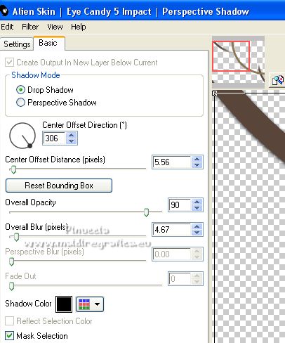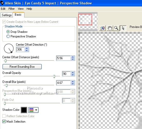 8. Effetti>Plugins>Alien Skin Eye Candy 5 Impact - Perspective Shadow, con i settaggi precedenti.