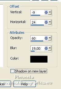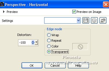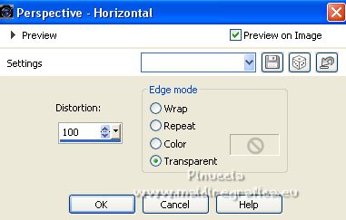 For this tutorial, you will need: ![]() (The links of the tubemakers sites here). ![]() consult, if necessary, my filter section here Mura's Meister - Cloud here Mura's Meister - Copies here Alien Skin Eye Candy 5 Impact - Perspective Shadow here ![]() You can change Blend Modes and opacity of the layer, according to your colors. Copy the Selection in the Selection Folder. Copy the Masks in the Masks Folder. 1. Set your foreground color to #8e7245, and your background color to #59453a. ![]() 2. Open a new transparent image 1000 x 800 pixels. Effects>Plugins>Mura's Meister - Cloud ![]() this filter works with the colors of your material palette, but it keeps in memory the first setting used after the the opening of Psp. So, if you have already used the plugin, press Reset to be sure to have your colors. The result of this effects is random, so it won't be the same as mine. If you want to change the appearance of the clouds, click on the preview window, until you'll see the result you like better. See the several results in the French and Italian translations 3. Adjust>Add/Remove Noise>Add Noise. ![]() 4. Layers>Duplicate. Layers>Load/Save Mask>Load Mask from Disk. Look for and load the mask IMG-4608k.jpg ![]() Layers>Merge>Merge Group. 5. Effects>Plugins>Alien Skin Eye Candy 5 Impact - Perspective Shadow. Shadow color: #000000 ![]() Adjust>One Step Photo Fix. 6. Layers>New Raster Layer. Selections>Load/Save Selection>Load Selection from Disk. Look for and load the selection Selec.Sui.Tuto.306-5.pspSelection. ![]() Flood Fill with your dark background color #59453a.Keep selected. 7. Effects>Image Effects>Seamelss Tiling, default settings. ![]() Keep again selected. ![]() Flood Fill again with your dark background color #59453a.Selections>Select None. Effects>Image Effects>Seamelss Tiling, same settings. ![]() 8. Effects>Plugins>Alien Skin Eye Candy 5 Impact - Perspective Shadow, same settings. ![]() 9. Set your foreground color to #fcfcfc. ![]() Layers>New Raster Layer. Flood Fill the layer with your foreground color #fcfcfc.10. Layers>Load/Save Mask>Load Mask from Disk. Look for and load the mask smArt_maszk_62 ![]() Layers>Merge>Merge Group. 11. Activate your background color, Raster 1. Layers>Duplicate. Layers>Arrange>Bring to Top. ![]() 12. Effects>Geometric Effects>Perspective horizontal. ![]() Repeat Effects>Geometric Effects>Perspective horizontal -100. ![]() Result ![]() 13. Effects>Plugins>Mura's Meister - Copies. in this case Bg Color doesn't matter; any color does not change the result ![]() 14. Adjust>Brightness and Contrast>Fill Light/Clarity. ![]() 15. Effects>Distortion Effects>Polar Coordinates ![]() 16. Objects>Align>Left. ![]() Layers>Duplicate. Image>Mirror. Image>Flip. Layers>Merge>Merge Down. 17. Effects>3D Effects>Drop Shadow, color #000000. ![]() Reduce the opacity of this layer to 79%. 18. Layers>New Raster Layer. Flood Fill the layer with your foreground color #fcfcfc.Layers>Load/Save Mask>Load Mask from Disk. Look for and load the mask MASKSUIZA-0303.jpg ![]() Layers>Merge>Merge Group. Layers>Duplicate. Layers>Merge>Merge Down. 19. Effects>Plugins>Alien Skin Eye Candy 5 Impact - Perspective Shadow, same settings. ![]() Reduce the opacity of this layer to 89%. 20. Layers>Merge>Merge visible. Adjust>One Step Photo Fix. 21. Open the tube Suizabella_Ref_AG-003285.pspimage ![]() Edit>Copy. Go back to your work and go to Edit>Paste as new layer. Image>Resize, to 80%, resize all layers not checked. Move the tube to the right.![]() 22. Effects>3D Effects>Drop shadow, color #000000. ![]() Layers>Merge>Merge visible. 23. Sign your work on a new layer. 24. Add, if you want, the author and translator's watermarks. Layers>Merge>Merge All and save as jpg. Versions with tubes by Suizabella ![]() ![]() ![]() If you have problems or doubt, or you find a not worked link, or only for tell me that you enjoyed this tutorial, write to me. |
