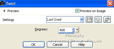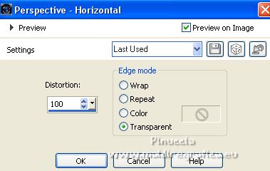 For this tutorial, you will need: ![]() (The links of the tubemakers sites here). ![]() consult, if necessary, my filter section here Filters Unlimited 2.0 here &<Bkg Designer sf10III> - PatchWork (da importare in Unlimited) here Mura's Meister - Copies here Alien Skin Eye Candy 5 Impact - Perspective Shadow, Glass here ![]() You can change Blend Modes and opacity of the layer, according to your colors. Copy the Preset in the Presets Folder. Copy the Gradient in the Gradients Folder. Copy the Selection in the Selection Folder. Copy the Mask in the Masks Folder. 1. Set your foreground color to #837670, and your background color to #dedad9. ![]() Set your foreground color to Gradient and select the Gradient SuiGrad044, style Linear. ![]() if you use other colors, also the gradient will change color ![]() 2. Open a new transparent image 1000 x 800 pixels, Flood Fill the transparent image with your Gradient.Adjust>Add/Remove Noise>Add Noise. ![]() 3. Effects>Plugins>Filters Unlimited 2.0 - &<Bkg Designer sf10III> - PatchWork. ![]() 4. Effects>User Defined Filter - select the preset Emboss 3 and ok. ![]() 5. Layers>New Raster Layer. Flood Fill the layer with your gradient.Image>Flip. Layers>Load/Save Mask>Load Mask from Disk. Look for and load the mask 1217491038_masques.jpg ![]() Layers>Merge>Merge Group. 6. Activate your bottom layer, Raster 1. Layers>Duplicate. Image>Arrange>Bring to Top. ![]() Effects>Geometric Effects>Perspective horizontal. ![]() Repeat Effects>Geometric Effects>Perspective horizontal - 100. ![]() ![]() 7. Effects>Distortion Effects>Twirl. ![]() 8. Effects>Plugins>Mura's Meister - Copies. in this case it is not necessary change the color BG color ![]() Image>Flip. 9. Effects>Plugins>Alien Skin Eye Candy 5 Impact - Perspective Shadow. Shadow color #000000 ![]() 10. Activate again your bottom layer, Raster 1. Open the tube SuizaBella_Ref_AG-001397.pspimage ![]() Edit>Copy. Go back to your work and go to Edit>Paste as new layer. Image>Mirror. Objects>Align>Right Objects>Align>Bottom or activate your Pick Tool ![]() and set Position X: 430,00 and Position Y: 40,00 Change the Blend mode of this layer to Luminance (legacy). ![]() 11. Activate your bottom layer, Raster 1. Layers>New Raster Layer. Selections>Load/Save Selection>Load Selection from Disk. Look for and load the selection benice 154.1.PspSelection ![]() Flood Fill the selection with your gradient.12. Effects>3D Effects>Inner Bevel, color black. ![]() Selections>Select None. 13. Effects>Plugins>Alien Skin Eye Candy 5 Impact Glass. Glass color black. ![]() 14. Effects>Image Effects>Seamless Tiling, default settings. ![]() 15. Layers>Merge>Merge visible. Adjust>One Step Photo Fix. 16. Open the tube SuizaBella_Ref_AG-003234.pspimage ![]() Edit>Copy. Go back to your work and go to Edit>Paste as new layer. Image>Resize, to 85%, resize all layers not checked. Move the tube to the left side.Effects>Plugins>Alien Skin Eye Candy 5 Impact - Perspective Shadow, same settings. ![]() 17. Layers>Merge>Merge visible. 16. Sign your work on a new layer. Add, if you want, the author and translator's watermarks. Layers>Merge>Merge All and save as jpg. For the tubes of these versions thanks Suizabella. ![]() ![]() ![]() If you have problems or doubt, or you find a not worked link, or only for tell me that you enjoyed this tutorial, write to me. 19 January 2023 |