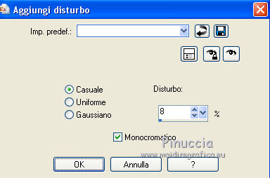 11. Regola>Aggiungi/Rimuovi disturbo>Aggiungi disturbo, con i settaggi precedenti.