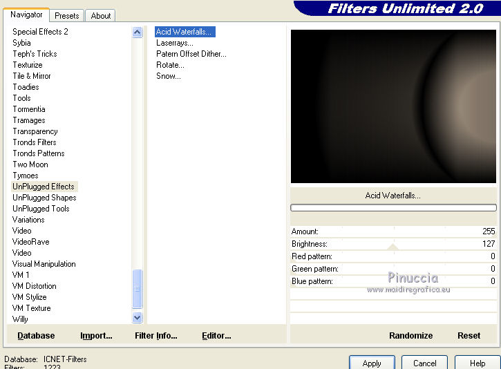 3. Effects>Plugins>Filters Unlimited 2.0 - Unplugged Effects - Acid Waterfalls.