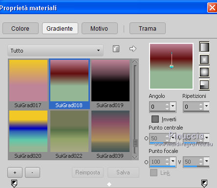 2. Passa il colore di primo piano a Gradiente e seleziona il gradiente SuiGrad018, stile Lineare.
