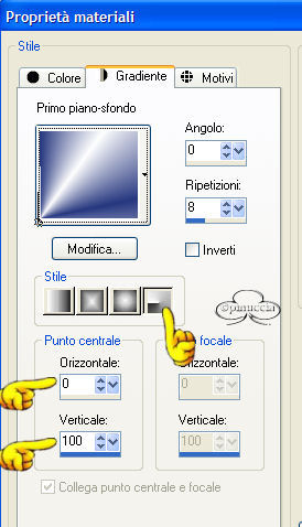 Riempi la tela con il gradiente, e i seguenti settaggi: