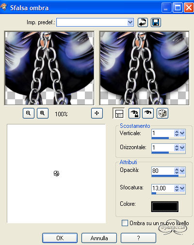 Effetti>Effetti 3D>Sfalsa ombra, con i seguenti settaggi: