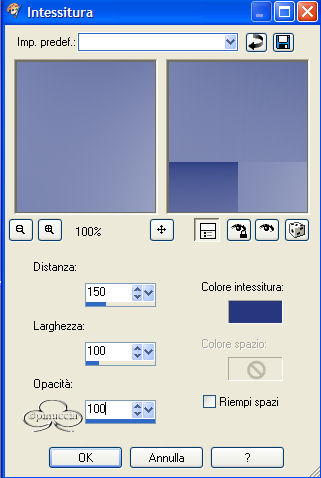Effetti>Effetti di trama>intessitura con i seguenti settaggi: