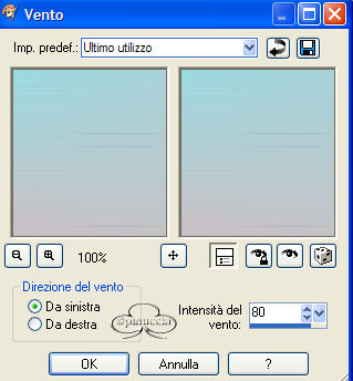 Effetti>Effetti di distorsione>Vento, con i seguenti settaggi:
