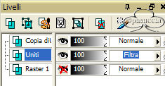 Nella paletta dei livelli cambia la modalità di miscelatura del livello uniti originale in Filtra.