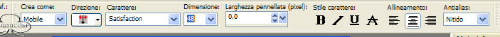 Attiva lo strumento testo, scegli il font Satisfaction per le lettere grandi, con questi settaggi: