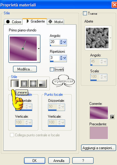 Imposta il colore di primo piano su gradiente con questi settaggi: