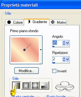 Imposta il colore di primo piano su gradiente, con i seguenti settaggi: