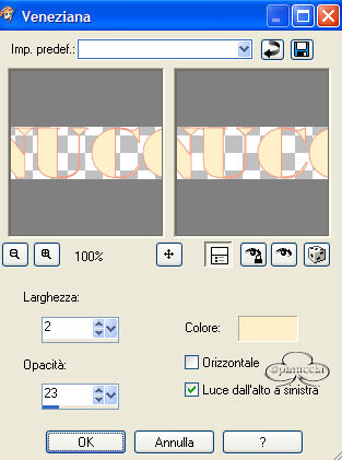 Effetti>Effetti di trama>Veneziana, con i seguenti settaggi:
