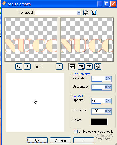 Effetti>Effetti 3D>Sfalsa ombra, con i settaggi precedenti.