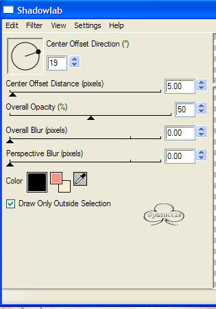 Effetti>Plugins>Eye Candy 4000 - Shadowlab, con i seguenti settaggi: