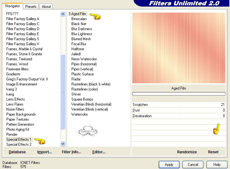 Effetti>Plugins>Unlimited2.0 /Special Effects 1 - Aged Film, con i seguenti settaggi: