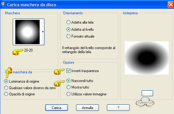Cerca la maschera 20-20, con i seguenti settaggi: