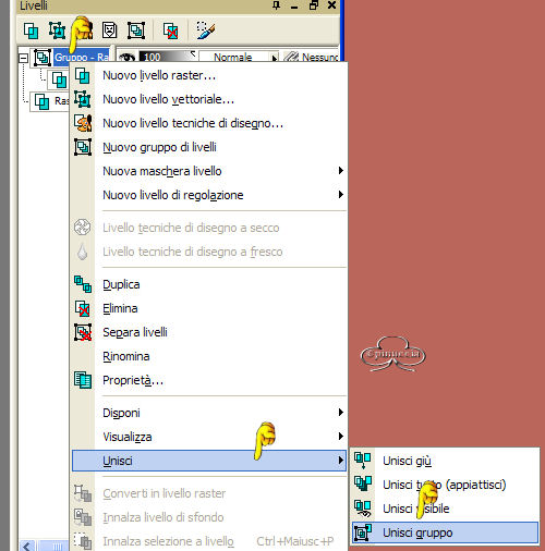 Clicca con il tasto destro sul livello superiore e scegli Unisci>unisci gruppo.