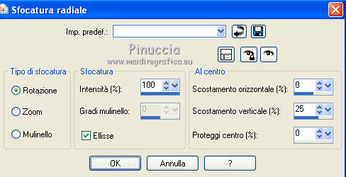Regola>Sfocatura>Sfocatura radiale, con i seguenti settaggi: