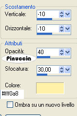 Effetti>Effetti 3D>Sfalsa ombra, con i seguenti settaggi, colore #ffff0a8.