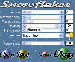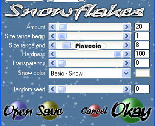 Effetti>Plugins>VDL Adrenaline - Snowflakes, con i seguenti settaggi.