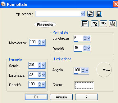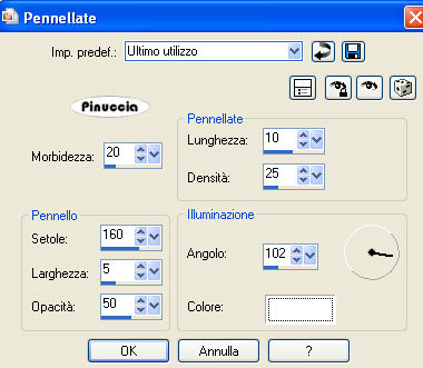 6. Effetti>Effetti tecniche di disegno>Pennellate, con i seguenti settaggi: