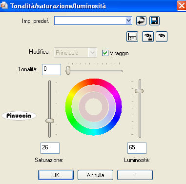10. Regola>Tonalità e saturazione>Tonalità-Saturazione-Luminosità, con i seguenti settaggi: