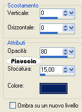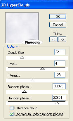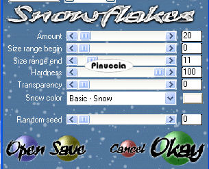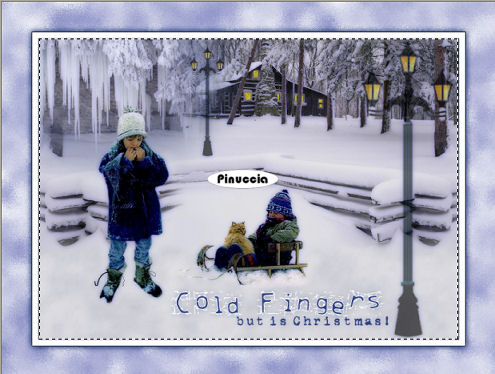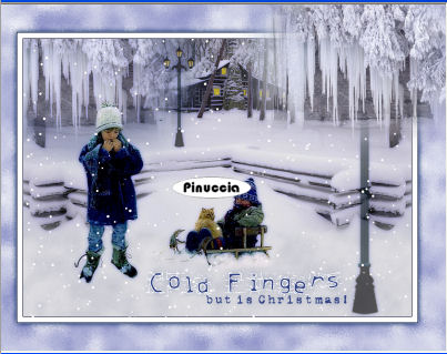 qui puoi trovare qualche risposta ai tuoi dubbi. Se l'argomento che ti interessa non è presente, ti prego di segnalarmelo. Questo tutorial è stato realizzato con PSP 9, ma può essere eseguito anche con le altre versioni di PSP. Per tradurlo, ho usato PSP X. Occorrente: Materiale qui Grazie a Kara e Mou per i tubes usati in questo tutorial. Filtri: Render - 2D Hyperclouds qui FM Tile Tools - Blend Emboss qui VDL Adrenalin - Snowflakes qui Xero - Fuzzifier qui Xero - Porcelain qui 1. Apri una nuova immagine trasparente 700 x 500 pixels. Imposta il colore di primo piano con #d7d7e3, e il colore di sfondo con il bianco #ffffff. 2. Effetti>Plugins>Render - 2D HyperClouds, con i settaggi standard. ![]() 3. Effetti>Plugins>FM Tile Tools - Blend Emboss, con i settaggi standard - 2 volte. ![]() 4. Apri il tube "Tube1984_Winterscene_misted_01_1_" e vai a Modifica>Copia. Torna al tuo lavoro e vai a Modifica>Incolla come nuovo livello. Sposta il tube a sinistra.Livelli>Duplica. Immagine>Rifletti. Posiziona i due tubes come nell'esempio:![]() 5. Assicurati di essere posizionato sul livello superiore e vai a Livelli>Unisci>Unisci giù. 6. Se necessario, attiva lo strumento Puntatore ![]() deformazione se stai usando PSP 9, oppure premi sulla tastiera il tasto D,e "tira" l'immagine ai lati per coprire tutta la larghezza della tela. 7. Apri il tube "KaraT4532" e vai a Modifica>Copia. non chiuderlo perchè ti servirà ancora Torna al tuo lavoro e vai a Modifica>Incolla come nuovo livello. Posiziona il tube come nell'esempio.![]() 8. Effetti>Effetti 3D>Sfalsa ombra, con i seguenti settaggi, colore #042261. ![]() 9. Apri il tube "mou_cold_fingers". Il tube ha le immagini in livelli separati. Attiva il livello del bambino in piedi e vai a Modifica>Copia. Torna al tuo lavoro e vai a Modifica>Incolla come nuovo livello. Immagine>Rifletti. Regola>Rimozione disturbo in un passaggio. Posiziona il tube a sinistra, come nel mio esempio.Torna al tube e posizionati sul livello del bambino con il gatto. Modifica>Copia. Torna al tuo lavoro e vai a Modifica>Incolla come nuovo livello. Posiziona il tube come nel mio esempio.10. Apri il tube "LightsSF" e vai a Modifica>copia. Torna al tuo lavoro e vai a Modifica>Incolla come nuovo livello. Livelli>Duplica. Immagine>Ridimensiona, al 120%, tutti i livelli non selezionato, 3 volte. Sposta il tube a destra.11. Attiva il livello originale del tube. Immagine>Ridimensiona, all'80%, tutti i livelli non selezionato - 2 volte. Sposta questo tube a sinistra, come nel mio esempio,e abbassa l'opacità al 62%. 12. Livelli>Unisci>Unisci visibile. 13. Effetti>Plugins>Xero - Porcelain con i settaggi standard. ![]() 14. Apri "Su-ColdFtext" e vai a Modifica>Copia. Torna al tuo lavoro e vai a Modifica>Incolla come nuovo livello. Sposta il tube in basso, come nel mio esempio.15. Attiva lo strumento Selezione a mano libera , da punto a punto,e seleziona le finestre che illuminerai. ![]() 16. Livelli>Nuovo livello raster. Imposta il colore di primo piano con #f0d730. Riempi la selezione con il colore di primo piano.17. Regola>Aggiungi/Rimuovi disturbo>Aggiungi disturbo: ![]() Selezione>Deseleziona. Abbassa l'opacità di questo livello al 72%. 18. Livelli>Unisci>Unisci visibile. 19. Immagine>Aggiungi bordatura, 1 pixel, simmetriche, con il colore #000621. 20. Immagine>Aggiungi bordatura, 10 pixela, simmetriche, con il colore #ffffff. 21. Immagine>Aggiungi bordatura, 1 pixel, simmetriche, con il colore #000621. 22. Immagine>Aggiungi bordatura, 50 pixels, simmetriche, con il colore #354585. 23. Imposta il colore di primo piano con #6d74ba, e il colore di sfondo con il bianco #ffffff. Seleziona il bordo azzurro con la bacchetta magica ![]() 24. Effetti>Plugins>Render - 2D HyperClouds, con i settaggi precedenti. 25. Effetti>Effetti di bordo>Aumenta. 26. Effetti>Plugins>Xero - Fuzzifier, con i settaggi standard, 2 volte. ![]() 27. Selezione>inverti. Effetti>Effetti 3D>Sfalsa ombra, come al passo 8 - 2 volte. ![]() Selezione>Deseleziona. 28. Attiva lo strumento Selezione , rettangolo,e seleziona l'area del paesaggio entro il bordo interno: ![]() 29. Livelli>Nuovo livello raster. Effetti>Plugins>VDL Adrenaline - Snowflakes: ![]() Selezione>Deseleziona. 30. Attiva nuovamente il tube "KaraT4532" e vai a Modifica>copia. Torna al tuo lavoro e vai a Modifica>Incolla come nuovo livello. Spostalo a destra, contro il bordo, come nel mio esempio.![]() Abbassa l'opacità di questo livello al 48%. 31. Apri il tube "vellumsnowflakes" e vai a Modifica>Copia. Torna al tuo lavoro e vai a Modifica>Incolla come nuovo livello. Spostalo a sinistra, come nel mio esempio.Livelli>Duplica. Immagine>Capovolgi. Posiziona i due tube come nell'esempio.![]() 32. Aggiungi il tuo nome e/o il tuo copyright. 33. Immagine>Aggiungi bordatura, 1 pixel, simmetriche, con il colore #000621. 34. Salva in formato jpg. Se vuoi, Immagine>Ridimensiona, all'85%, tutti i livelli selezionato. ![]() Se hai problemi o dubbi, o trovi un link non funzionante, o anche soltanto per un saluto, scrivimi. 11 Gennaio 2009 |