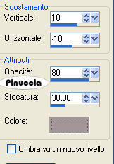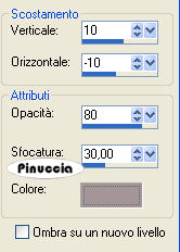 Effetti>Effetti 3D>Sfalsa ombra, con i seguenti settaggi, colore #a39598.
